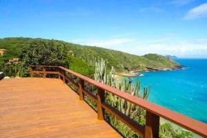 Vista do alto, a península consegue ser ainda mais exuberante! Um dos mais belos mirantes da cidade é o de João Fernandes, um deck de madeira que descortina vista de 180 graus, escancarando as praias de João Fernandes e de João Fernandinho. Ambas surpreendem pela paleta de cores em diversos tons de verde e azul que contrastam perfeitamente com a vegetação nativa, repleta de cactos gigantes.