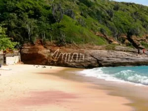 Depois de apreciar a bela praia do alto, do mirante de João Fernandes, é hora de tirar fotos com os pés na areia. Um dos cartões-postais por ali é uma grande pedra no canto esquerdo com um simples grafite:  o verbo “Amar”. No mais, é caprichar nos cliques que registram o contraste das águas super azuis com os coloridos stand up paddle sempre cruzando o mar.